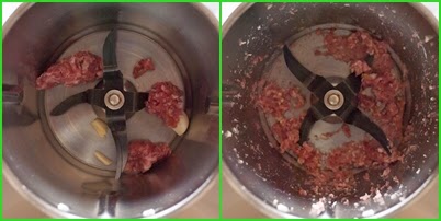 Mettete nel boccale l’aglio con la salsiccia dopo avergli tolto prima la pelle, fate tritare per 5 secondi a velocità 7