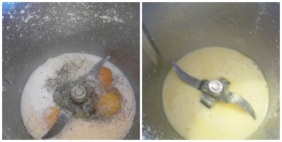 - Senza lavare il boccale mettete le uova, il latte, pepe e il parmigiano e frullate:10 sec. vel.5 (con tm21 vel.6)